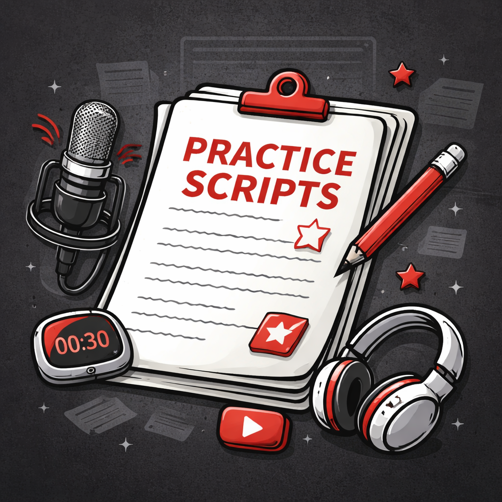 13 professionally-written character voiceover scripts + Jordan's coaching notes